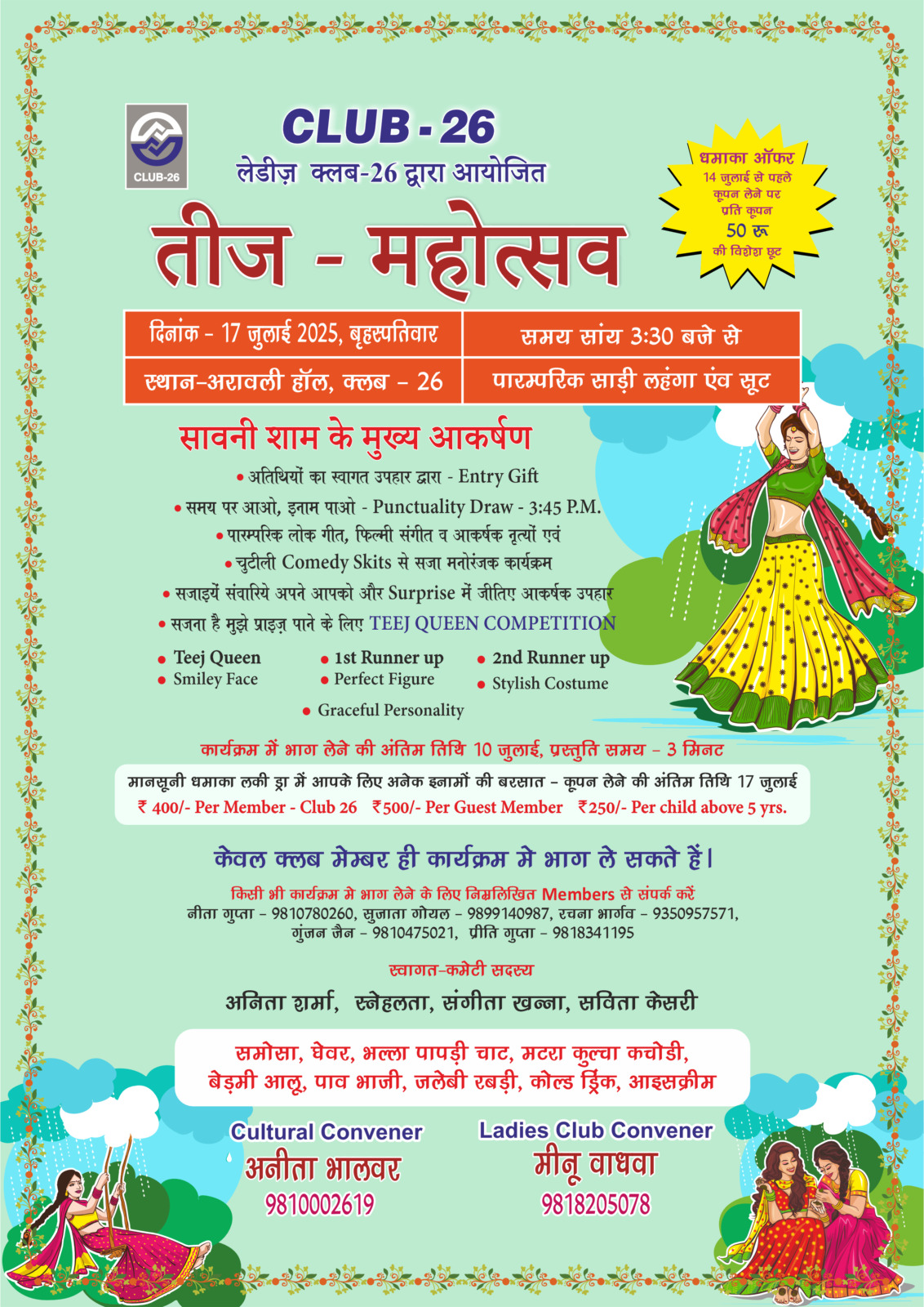 Club 26 new management committee team. | Message from the President: Mr. R. K. Khosla